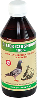 Olejek ten posiada właściwości zapobiegające chorobom ze względu na zawartość naturalnej allicyny. Pobudza trawienie i normalizuje układ trawienny. Korzystnie wpływa na układ krwionośny (czyści krew). Wykazuje właściwości przeciwrobaczne (aliole). Podawany z karmą korzystnie wpływa na utrzymanie dobrego zdrowia wszystkich gołębi. Swoją jakością przewyższa inne zwykłe olejki.