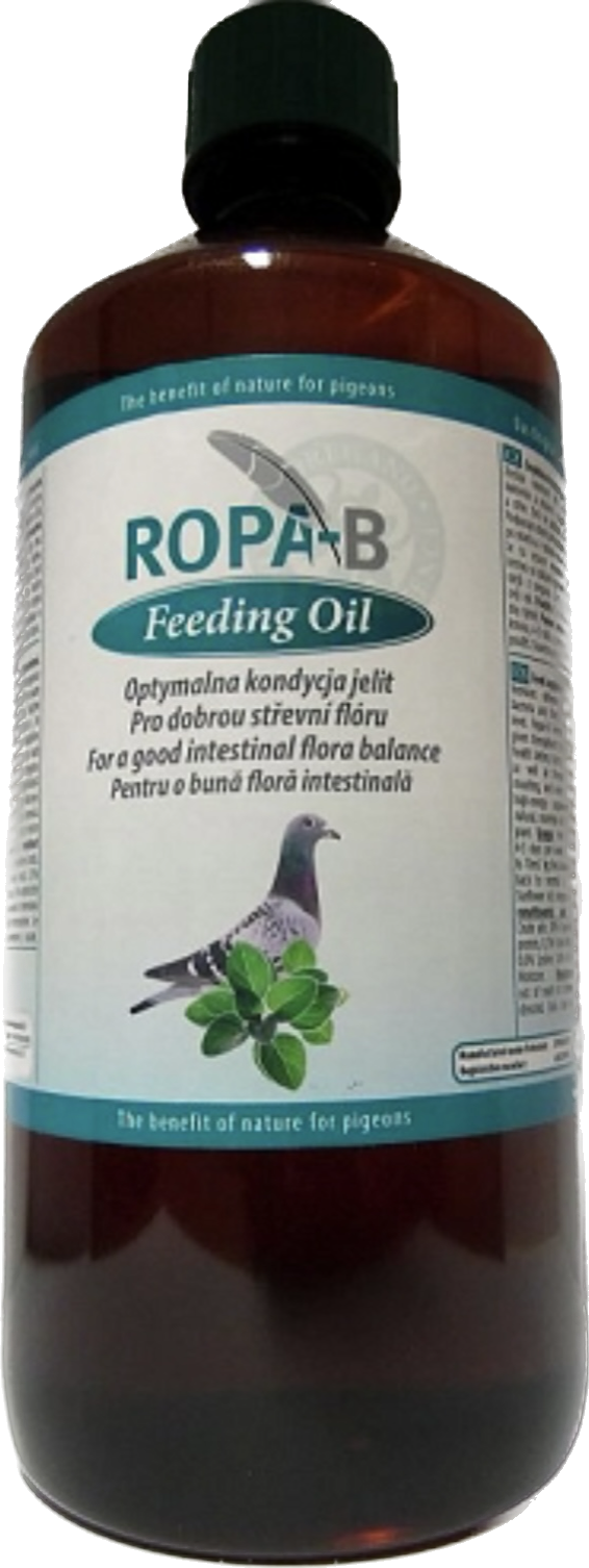 Olej na karmę 2% czystego olejku z oregano. Przeznaczony do utrzymania prawidłowej flory bakteryjnej przewodu pokarmowego. Zachowuje zdrowie gołębie podczas lotów, rozpłodu, pierzenia oraz w sezonie zimowym. ROPA-B jest produktem w 100% naturalnym, energetycznym, na bazie naturalnie uzyskanego wyciągu z oregano.
